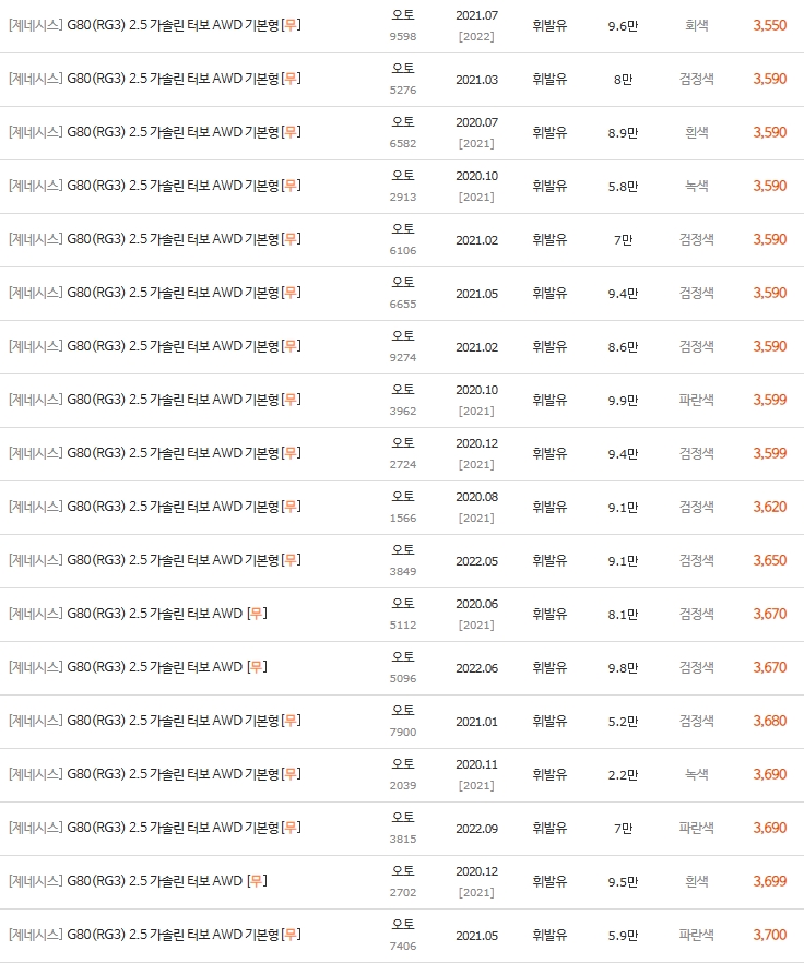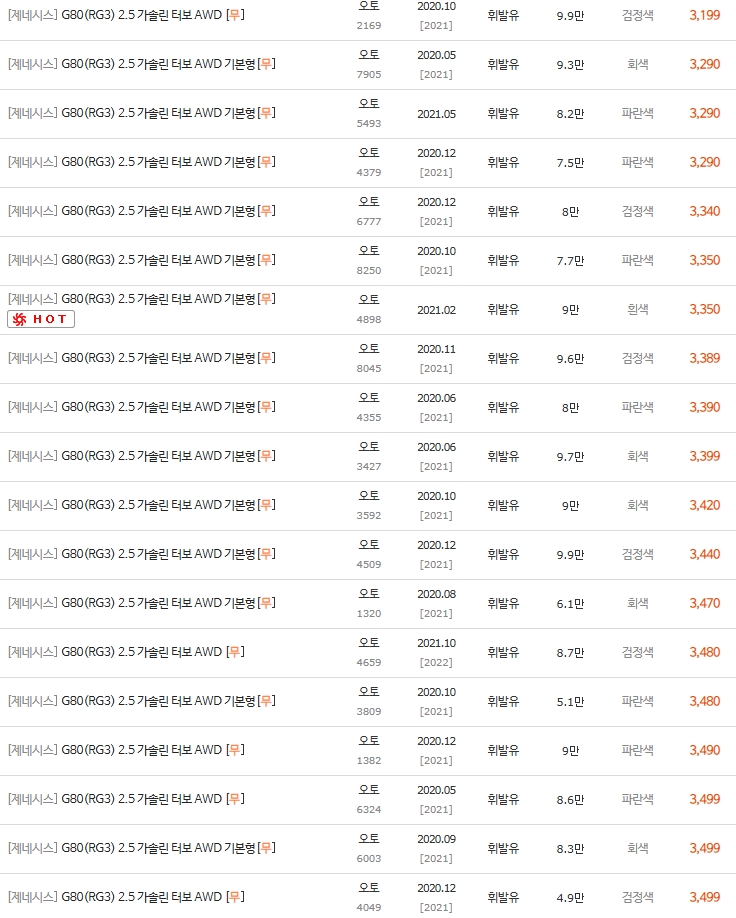 아래 동급 차량 시세표를 보시면 3100만원부터 3700만원대까지 형성되어 있죠?